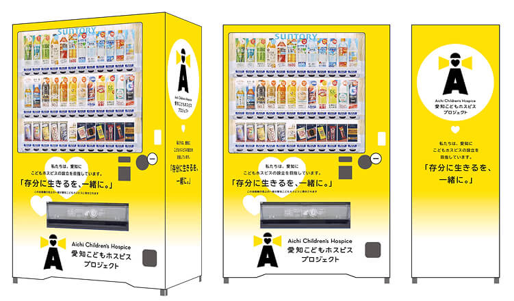 飲料水を1本購入する毎に数円がこどもホスピスに寄付される仕組みとなっている自動販売機です。